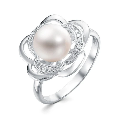 Кольцо "Роза" из серебра с белой речной жемчужиной 8,5-9 мм, (2709)