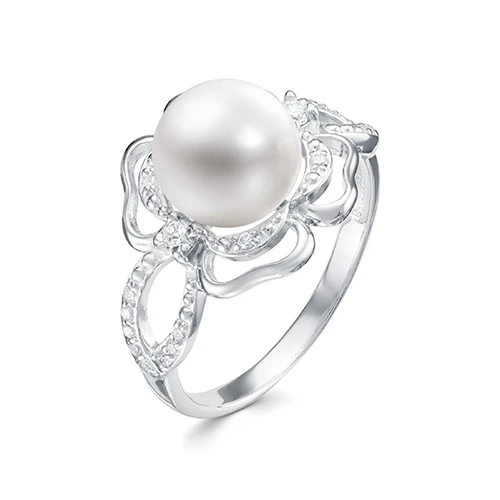 Кольцо "Роза" из серебра с белой речной жемчужиной 8,5-9 мм, (3070)