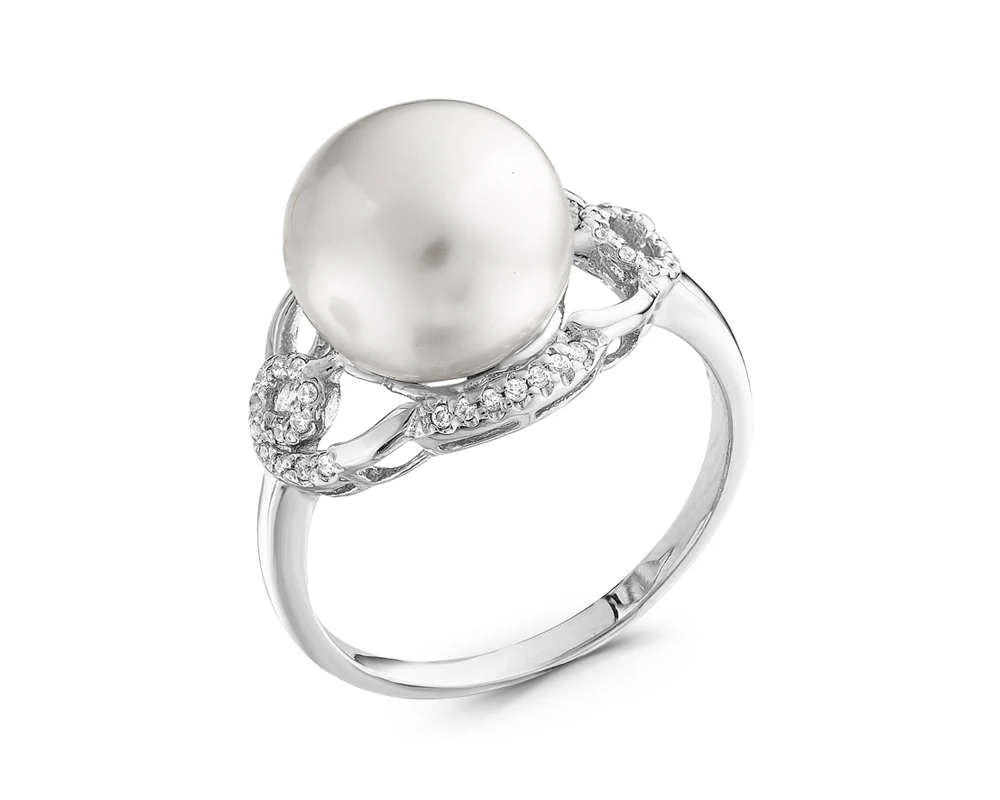 Кольцо из серебра с белой речной жемчужиной 11,5 мм, (3065)