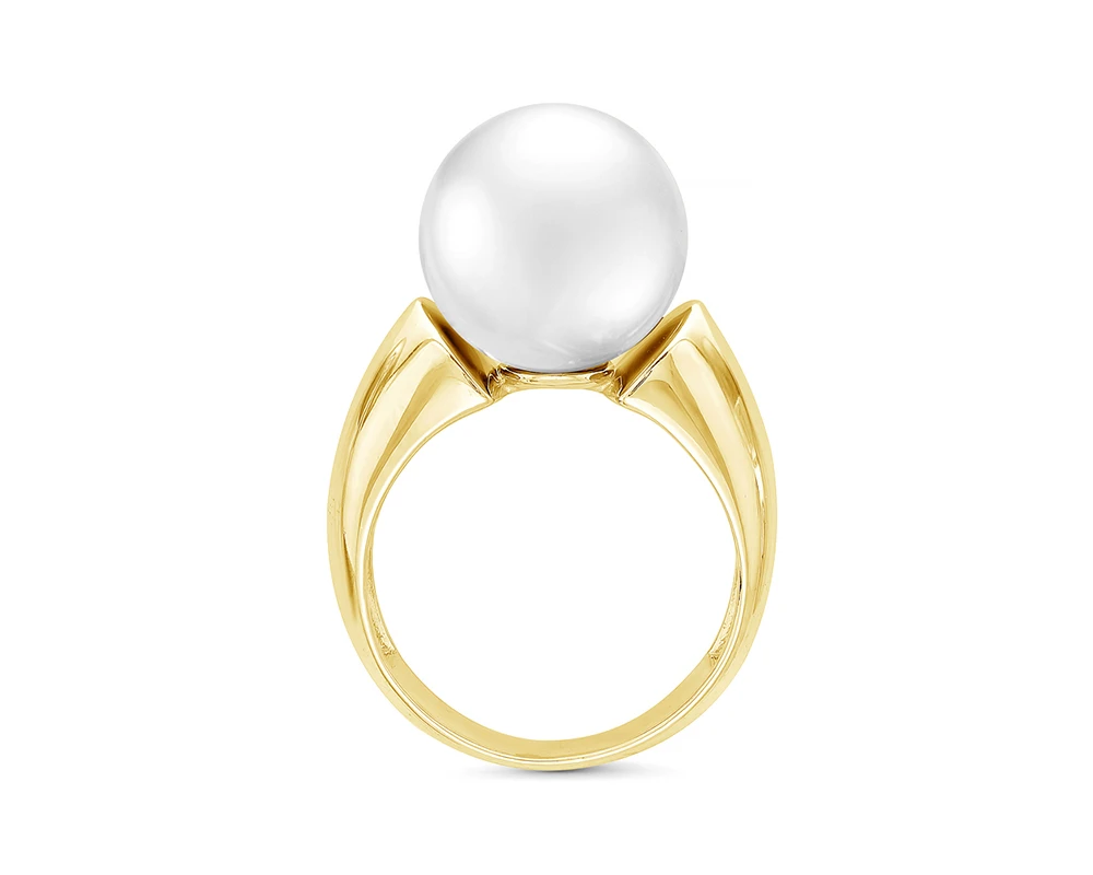 Кольцо выполнено из серебра 925 пробы с желтым золотым покрытием, украшено белой пресноводной жемчужиной. Качество жемчужины наивысшее, блеск очень яркий, форма идеальная круглая, дефектов на поверхности нет. Производство — Россия.