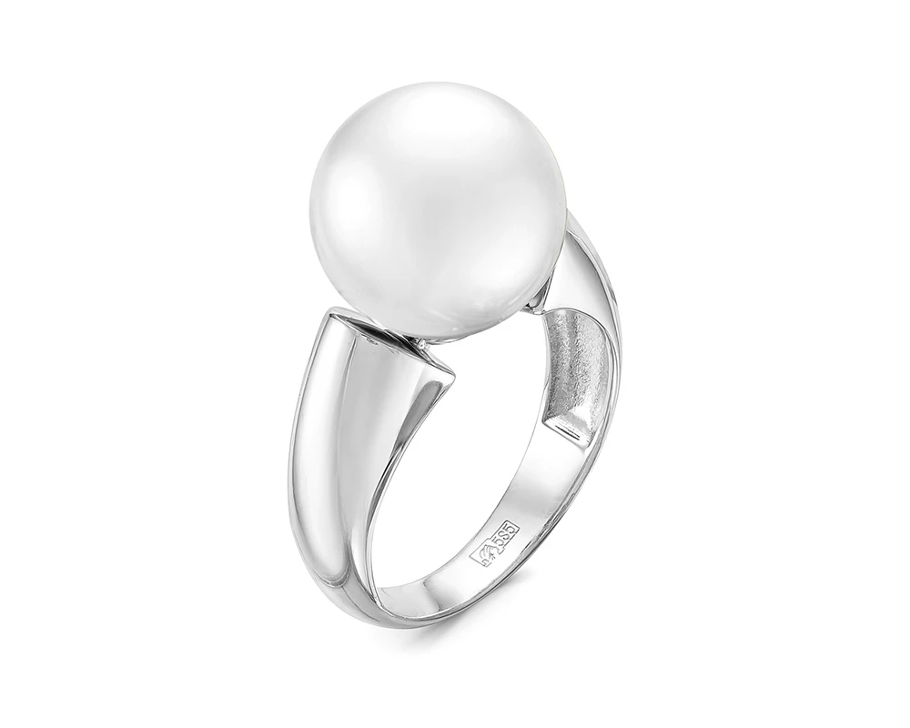 Кольцо выполнено из серебра 925 пробы, украшено белой пресноводной жемчужиной. Качество жемчужины высокое, блеск очень яркий, форма идеальная круглая, дефектов на поверхности нет. Производство — Россия.