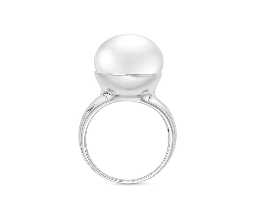 Кольцо из серебра с белой речной жемчужиной 14 мм, (4377)