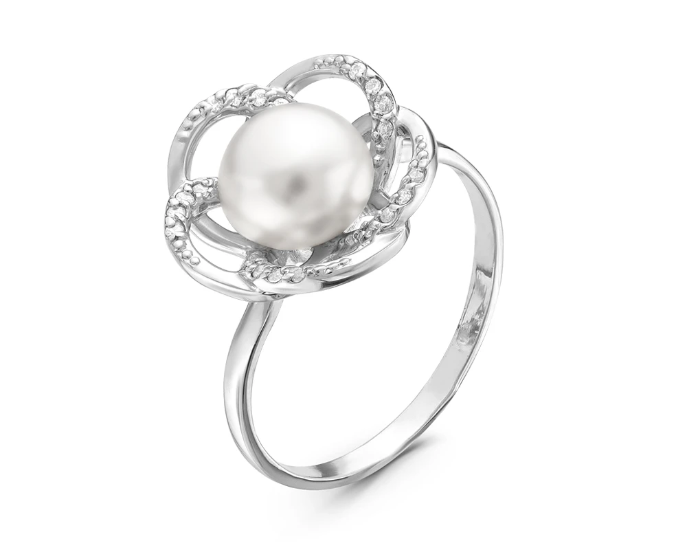 Кольцо из серебра с белой речной жемчужиной 7,5-8 мм, (3143)