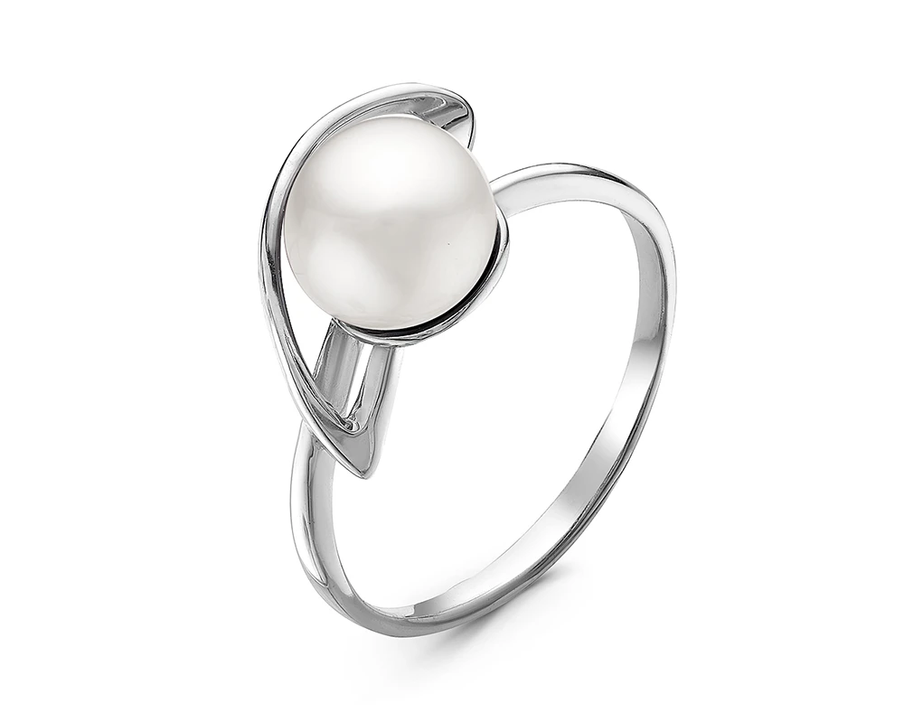Кольцо из серебра с белой речной жемчужиной 7,5-8 мм, (3454)