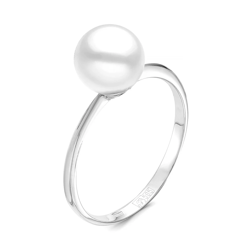 Кольцо из серебра с белой речной жемчужиной 7,5-8 мм, (1457)