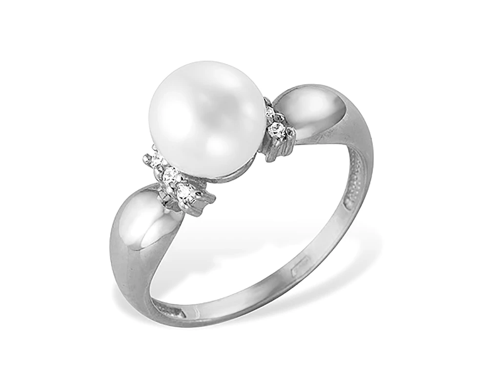 Кольцо из серебра с белой речной жемчужиной 7-7,5 мм, (3883)