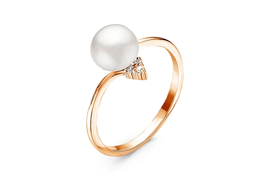 Кольцо выполнено из серебра 925 пробы с красным золотым покрытием, украшено белой пресноводной жемчужиной. Производство — Россия. Государственное пробирное клеймо.