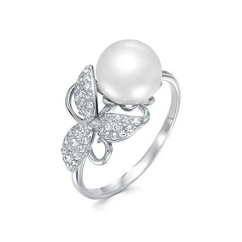 Кольцо из серебра с белой речной жемчужиной 9,5-10 мм, (694)