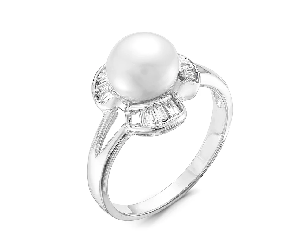 Кольцо из серебра с белой речной жемчужиной 8,5 мм, (3960)