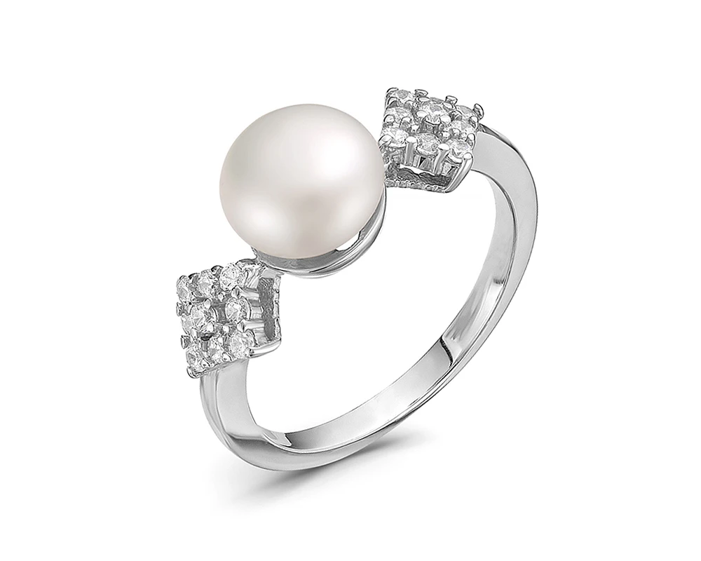 Кольцо из серебра с белой речной жемчужиной 8 мм, (2640)