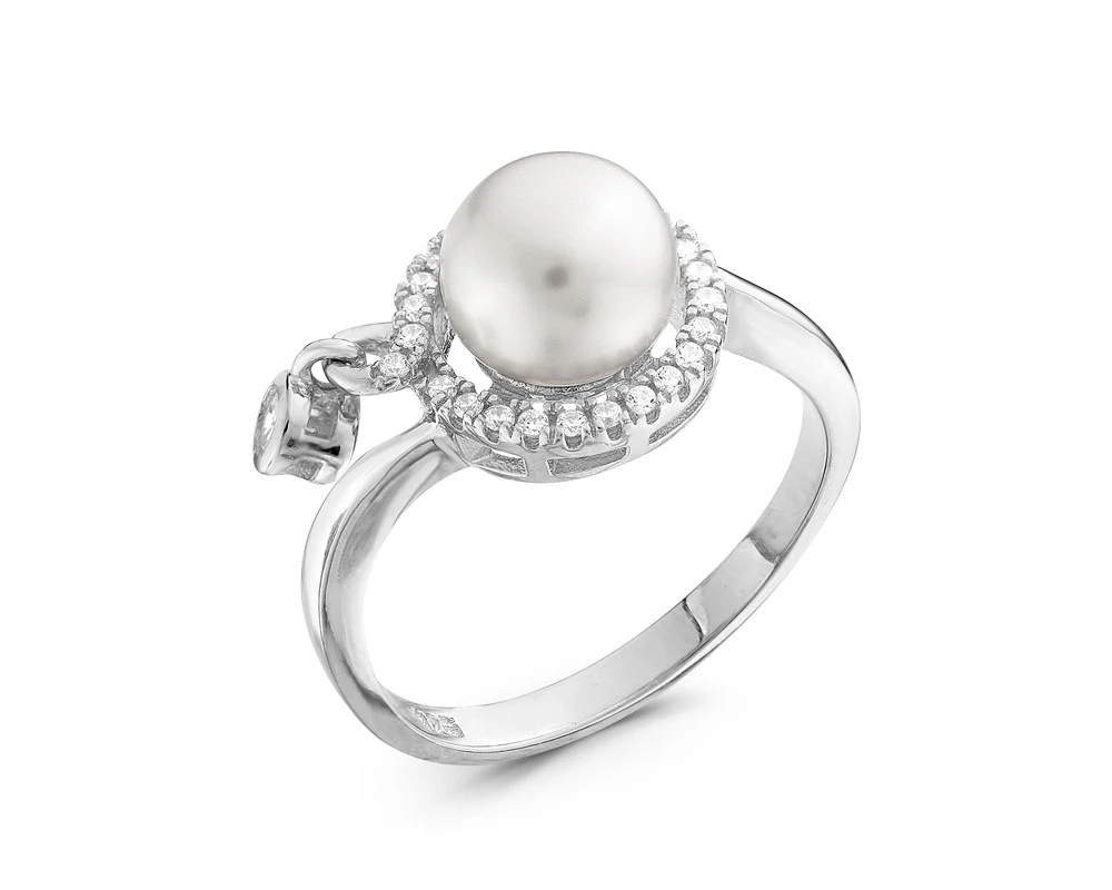 Кольцо из серебра с белой речной жемчужиной 8 мм, (3076)