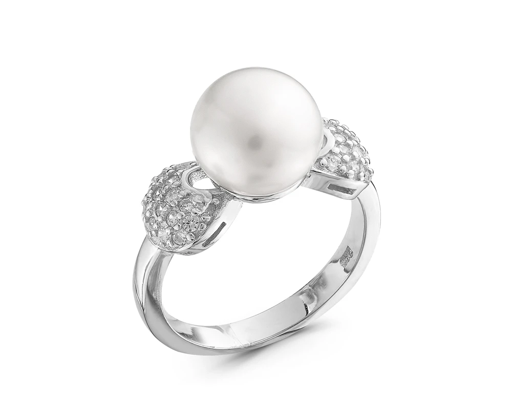 Кольцо из серебра с белой речной жемчужиной 9,5-10 мм, (3066)