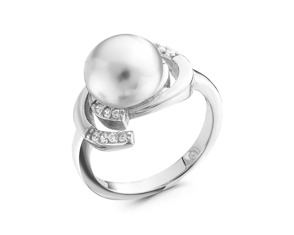 Кольцо из серебра с белой речной жемчужиной 9,5-10 мм, (3067)