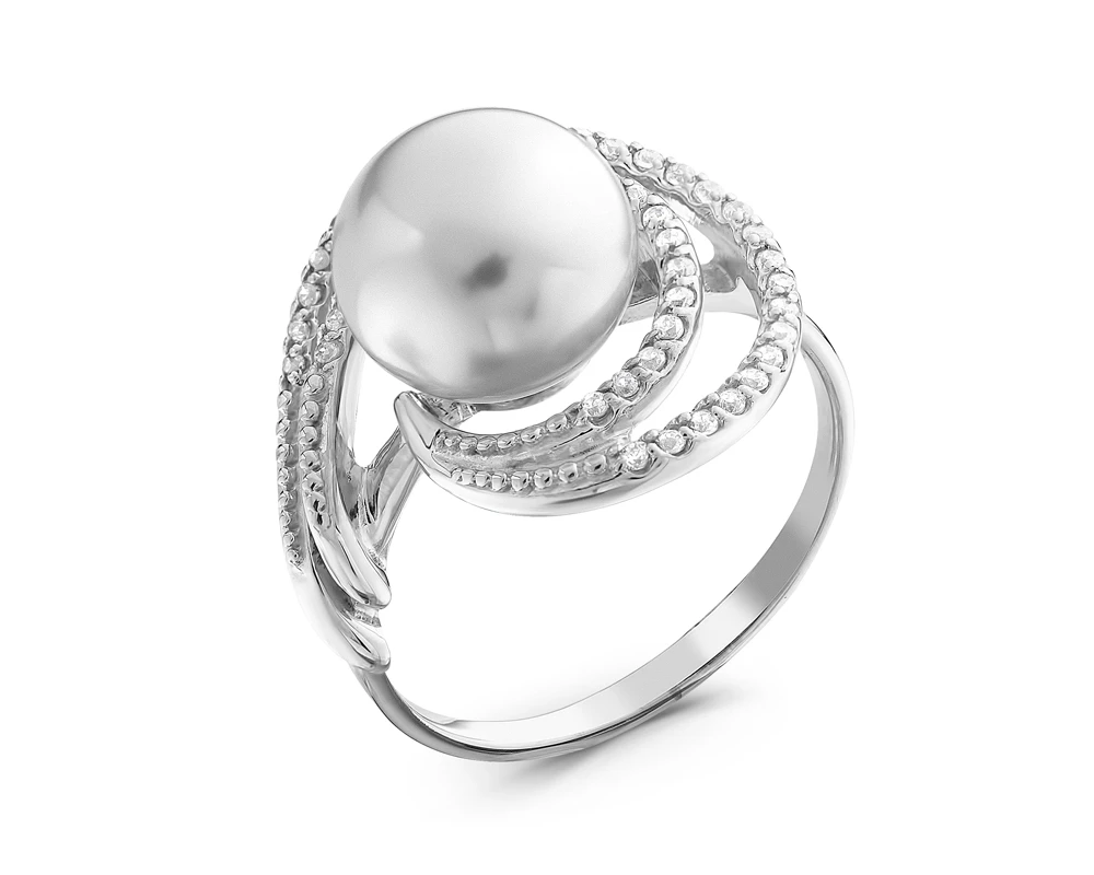 Кольцо из серебра с белой речной жемчужиной 9,5-10 мм, (3086)