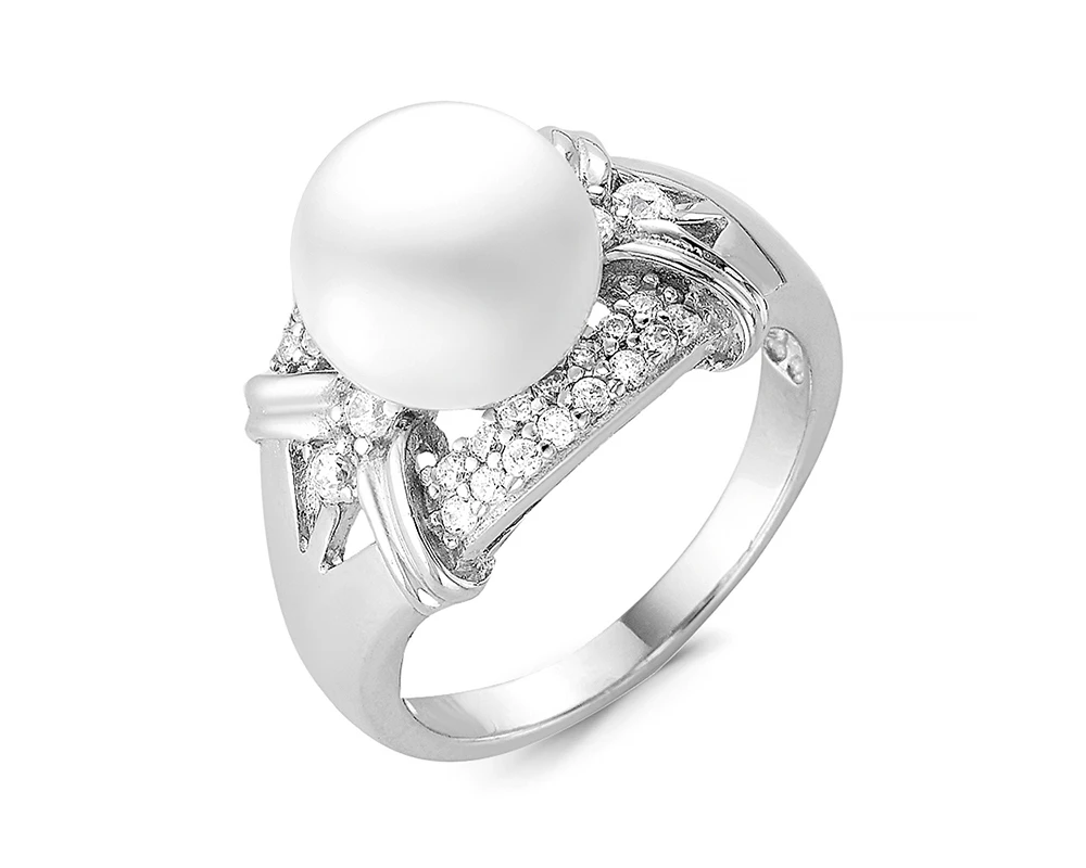 Кольцо из серебра с белой речной жемчужиной 9,5 мм, (2377)