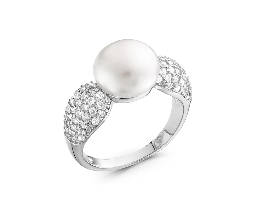 Кольцо из серебра с белой речной жемчужиной 9,5 мм, (3831)