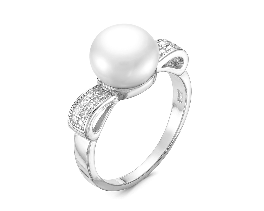 Кольцо из серебра с белой речной жемчужиной 9,5 мм, (4034)