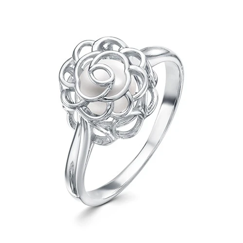 Кольцо "Роза" из серебра с белой речной жемчужиной 6,5-7 мм, (5286)