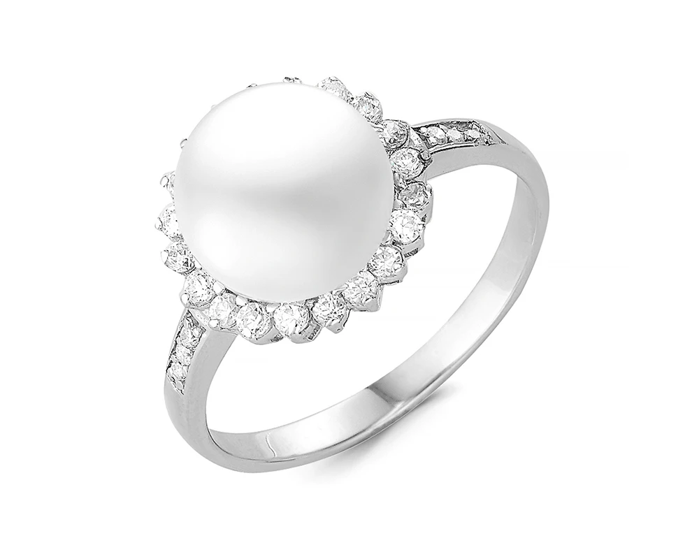 Кольцо из серебра с белой речной жемчужиной 9-9,5 мм, (2389)