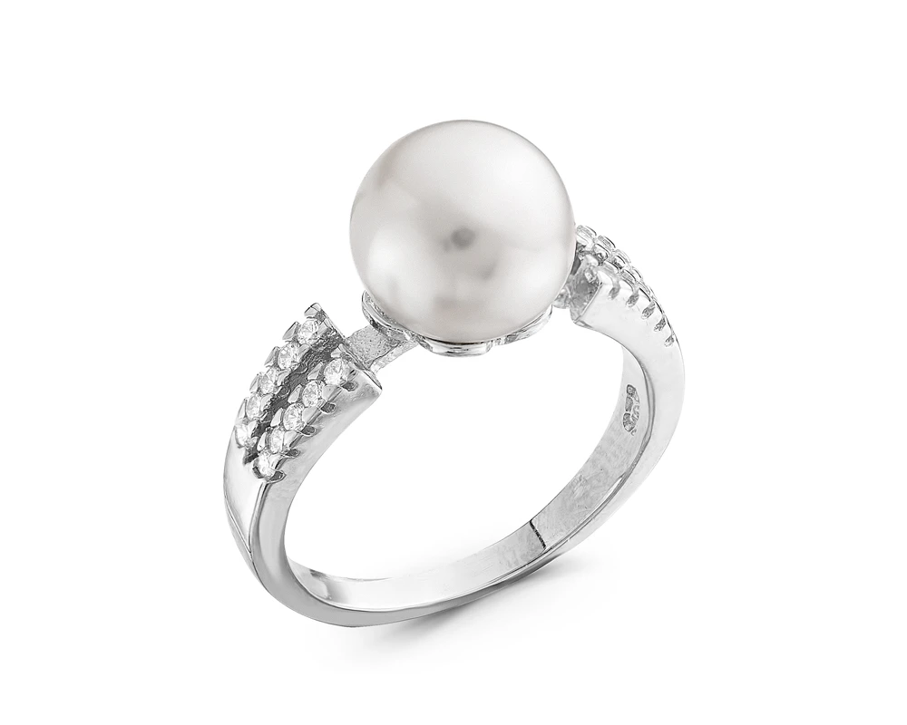 Кольцо из серебра с белой речной жемчужиной 9-9,5 мм, (3074)
