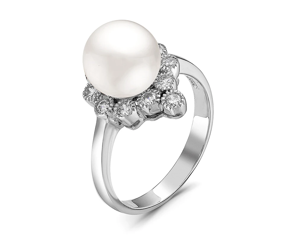 Кольцо из серебра с белой речной жемчужиной 9-9,5 мм, (3847)