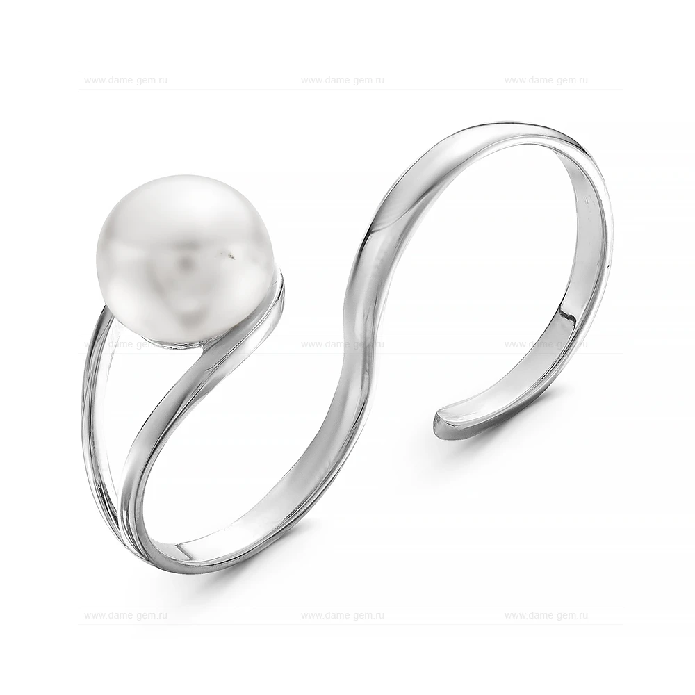 Двойное кольцо из серебра с белой речной жемчужиной 9 мм, (3949)