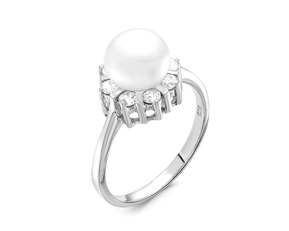 Кольцо из серебра с белой речной жемчужиной 9 мм, (3954)