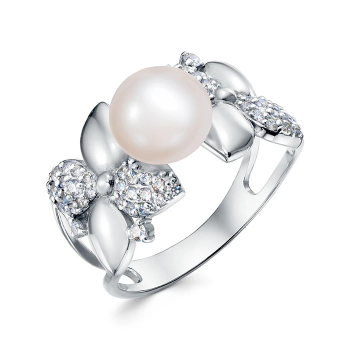Кольцо из серебра с белой речной жемчужиной 8,5-9 мм, (3761)