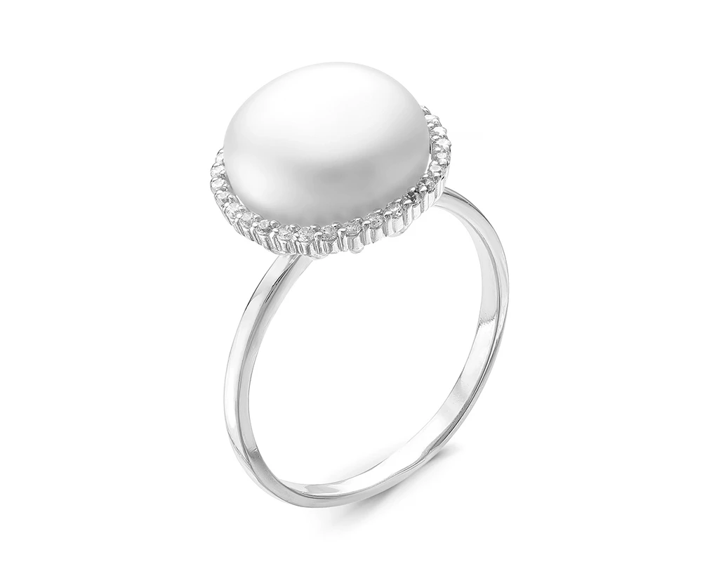 Кольцо выполнено из серебра 925 пробы, украшено белой речной жемчужиной. Производство — Россия.