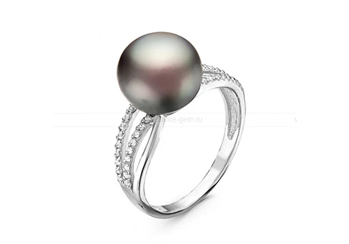 Кольцо из серебра с черной речной жемчужиной 10-11 мм, (3920)