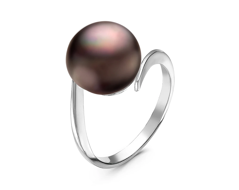 Кольцо из серебра с черной речной жемчужиной 10,5-11 мм, (3457)