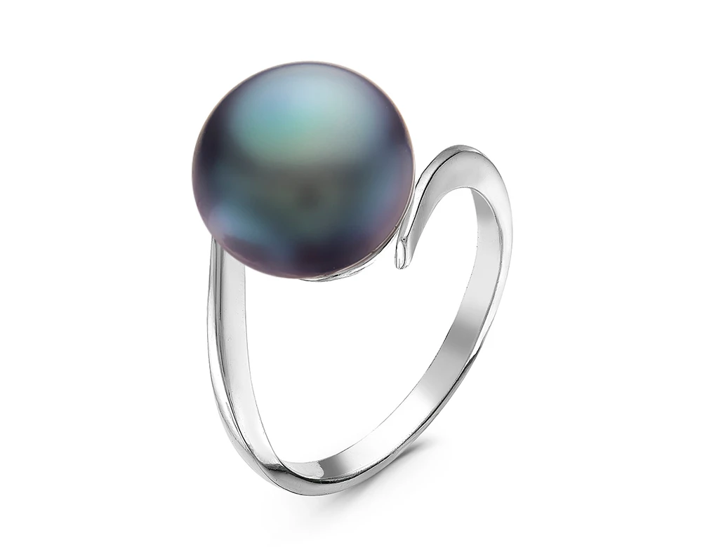 Кольцо выполнено из серебра 925 пробы, украшено черной пресноводной жемчужиной в форме пуговица (сплющенная). В кольцах могут быть установлены жемчужины черного цвета с разными оттенками.