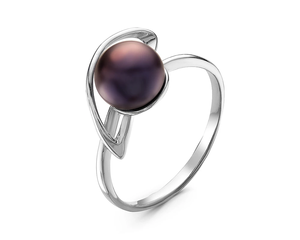 Кольцо из серебра с черной речной жемчужиной 7,5-8 мм, (3417)