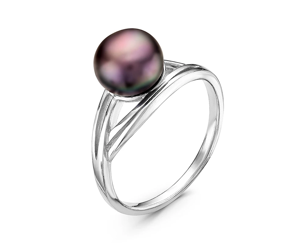Кольцо из серебра с черной речной жемчужиной 7,5-8 мм, (3418)
