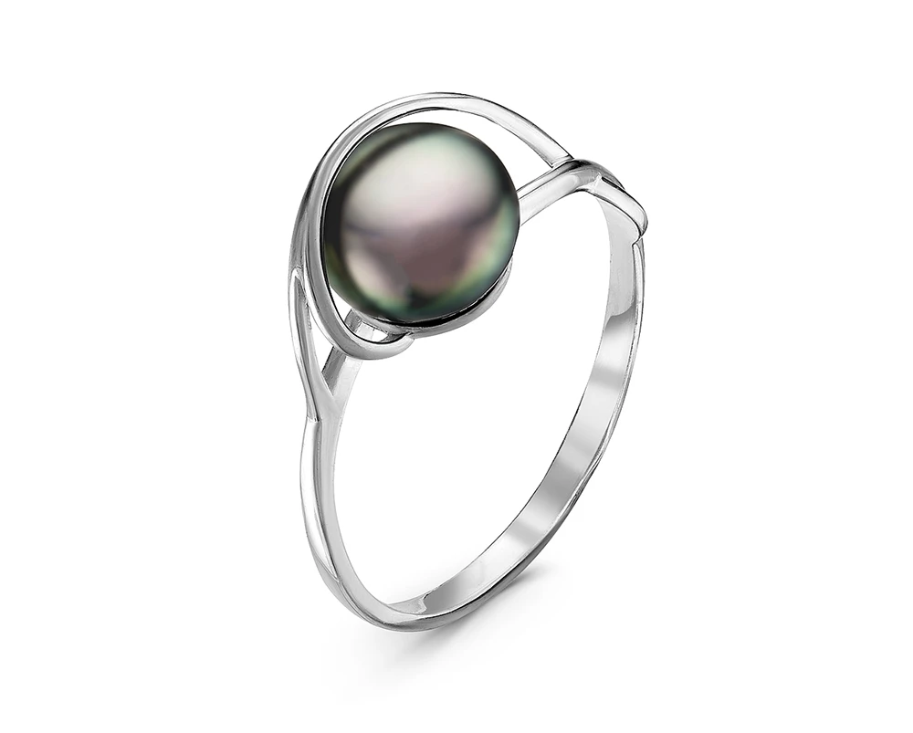 Кольцо из серебра с черной речной жемчужиной 8-8,5 мм, (3419)