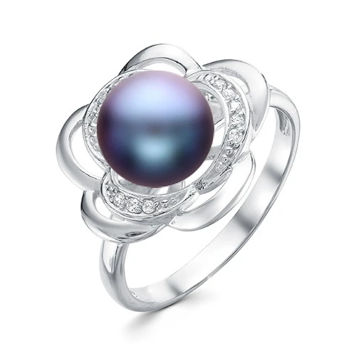 Кольцо "Роза" из серебра с черной речной жемчужиной 8,5-9 мм, (3844)