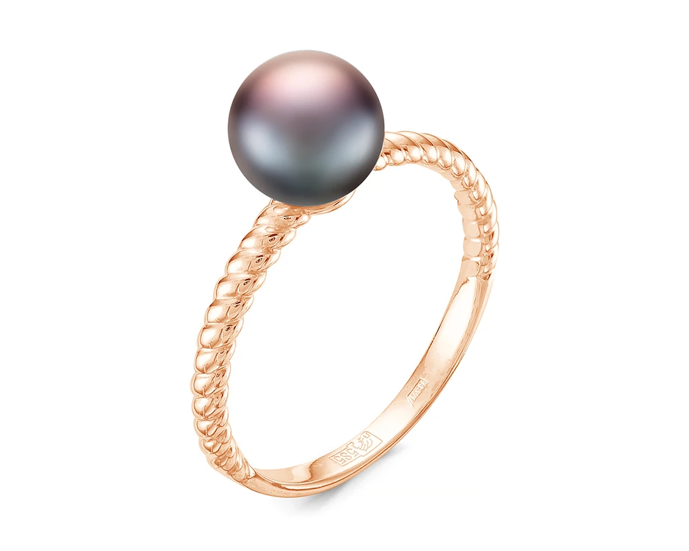 Кольцо выполнено из серебра 925 с красным золотым покрытием, украшено черной пресноводной жемчужиной. Качество жемчужины высокое, блеск очень яркий, форма идеальная круглая, дефектов на поверхности нет. Производство — Россия.