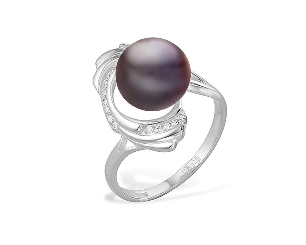 Кольцо выполнено из серебра 925 пробы, украшено черной пресноводной жемчужиной.