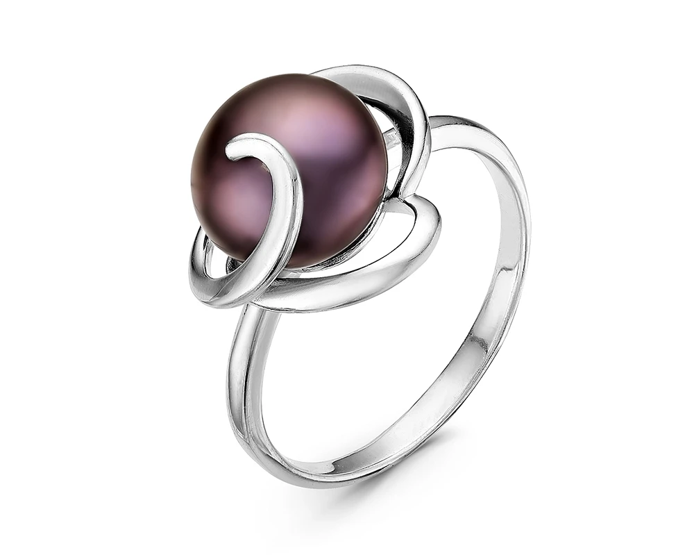 Кольцо из серебра с черной речной жемчужиной 9,5-10 мм, (3406)