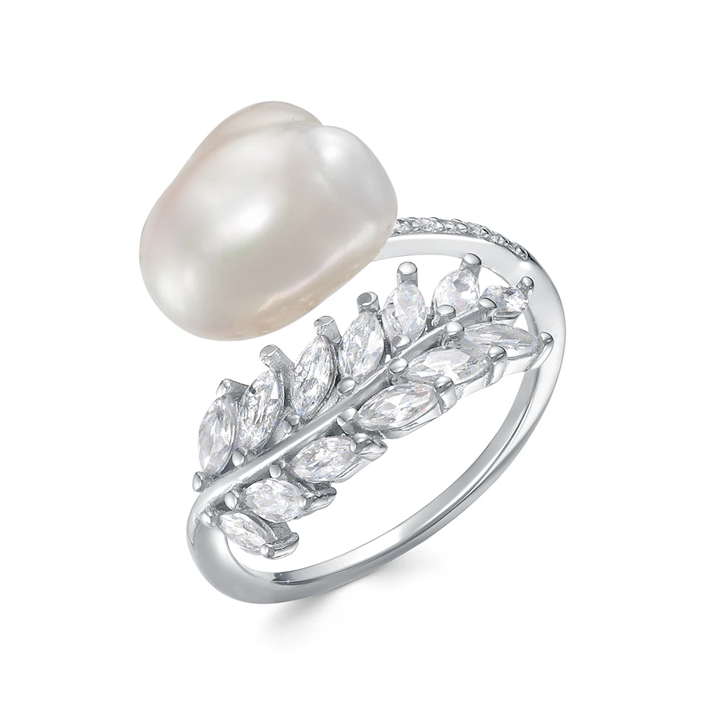Кольцо выполнено из серебра 925 пробы, украшено барочной жемчужиной и фианитами. Размер кольца - универсальный.