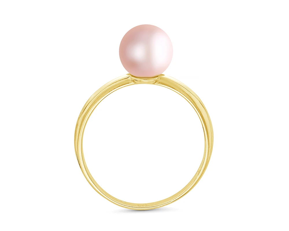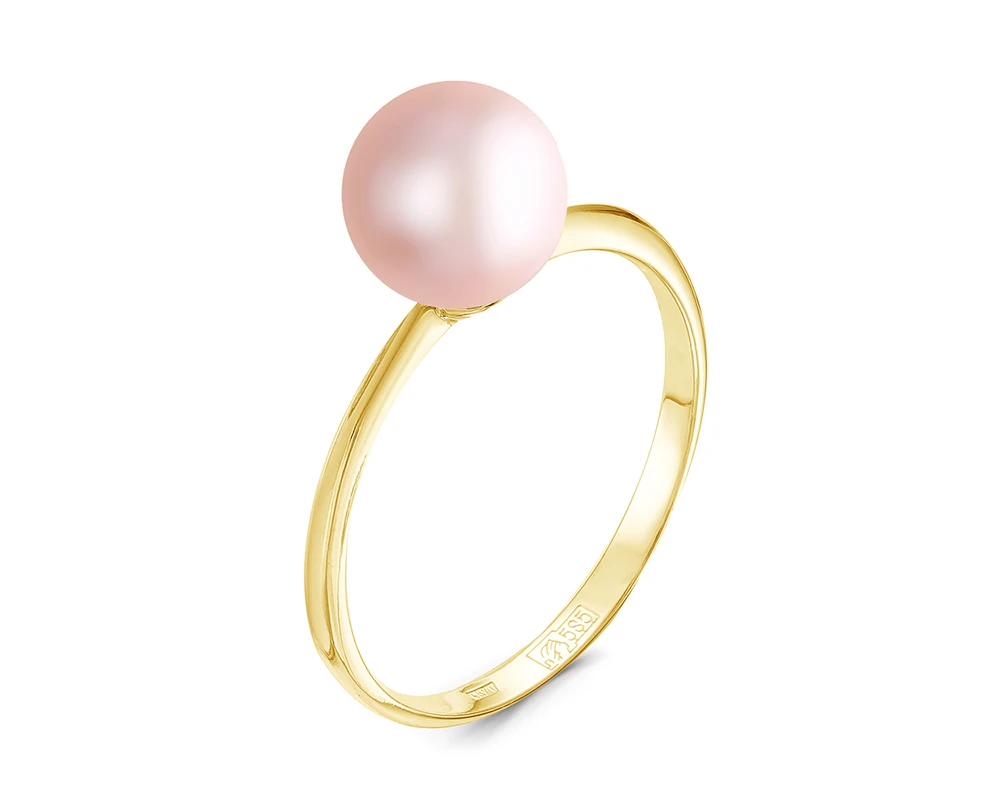 Кольцо выполнено из серебра 925 пробы с желтым золотым покрытием, украшено розовой пресноводной жемчужиной. Качество жемчужины высокое, блеск очень яркий, форма идеальная круглая, дефектов на поверхности нет. Производство — Россия.