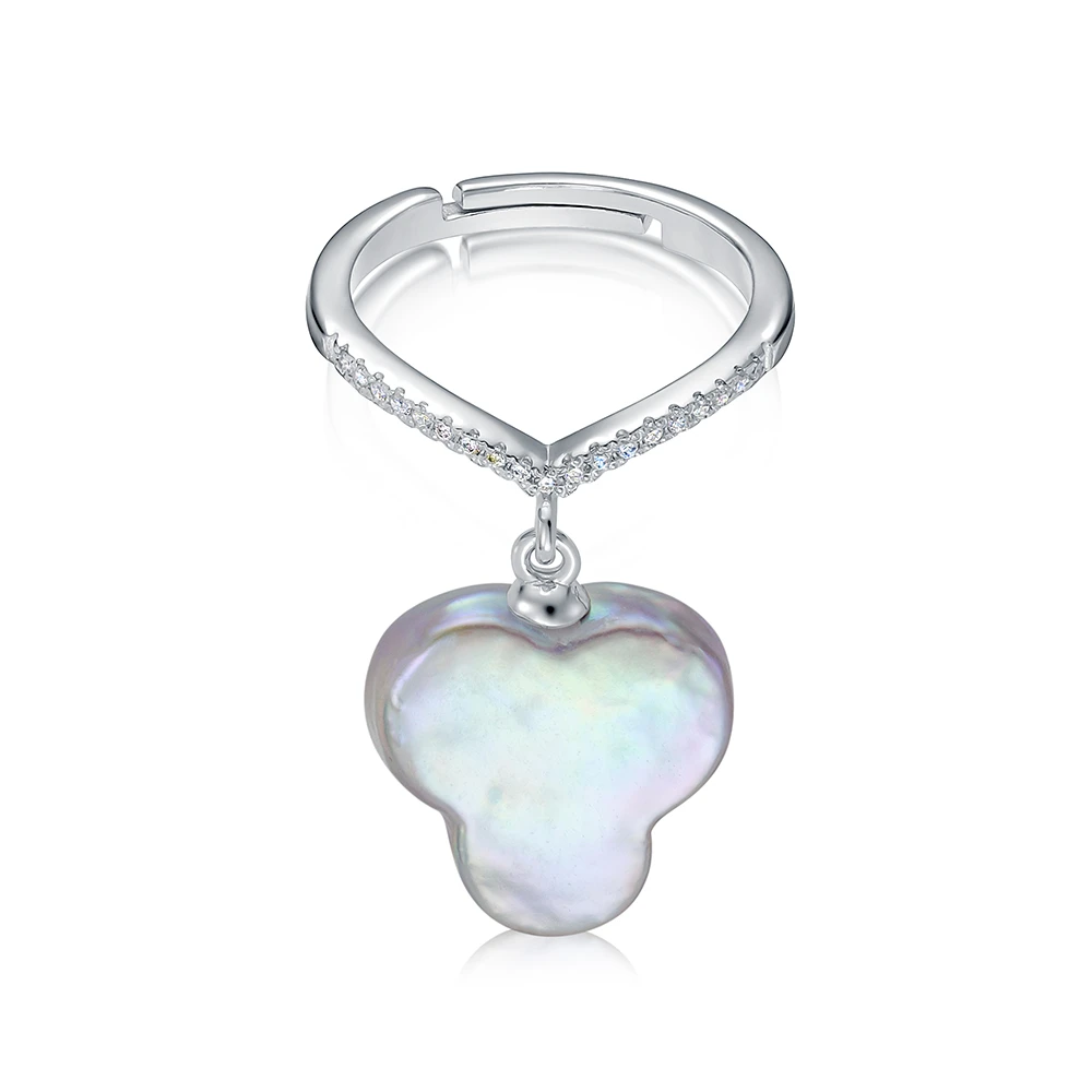Кольцо выполнено из серебра 925 пробы, украшено серебристой жемчужиной неправильной формой (барокко, кеши). Жемчужина в кольце уникальна, качество жемчужины — наивысшее. Размер кольца - универсальный.