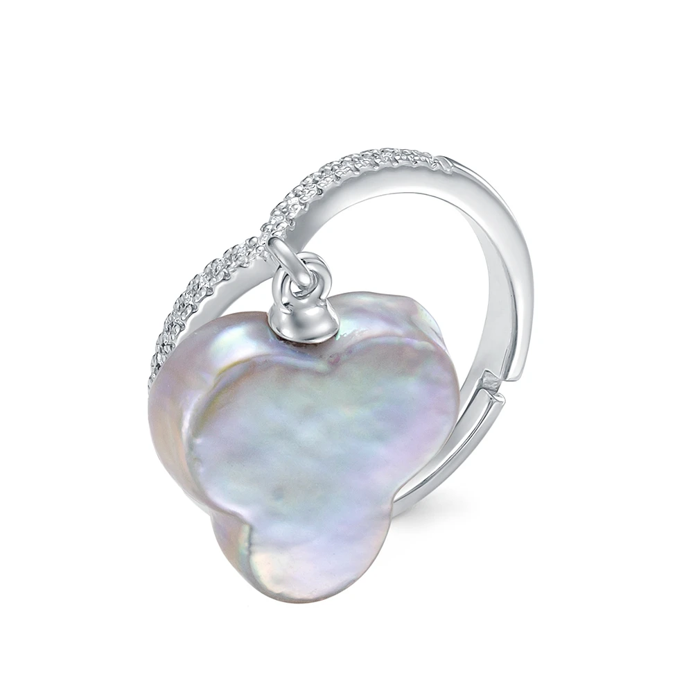 Кольцо из серебра с серебристой барочной жемчужиной 14 мм, (7394)