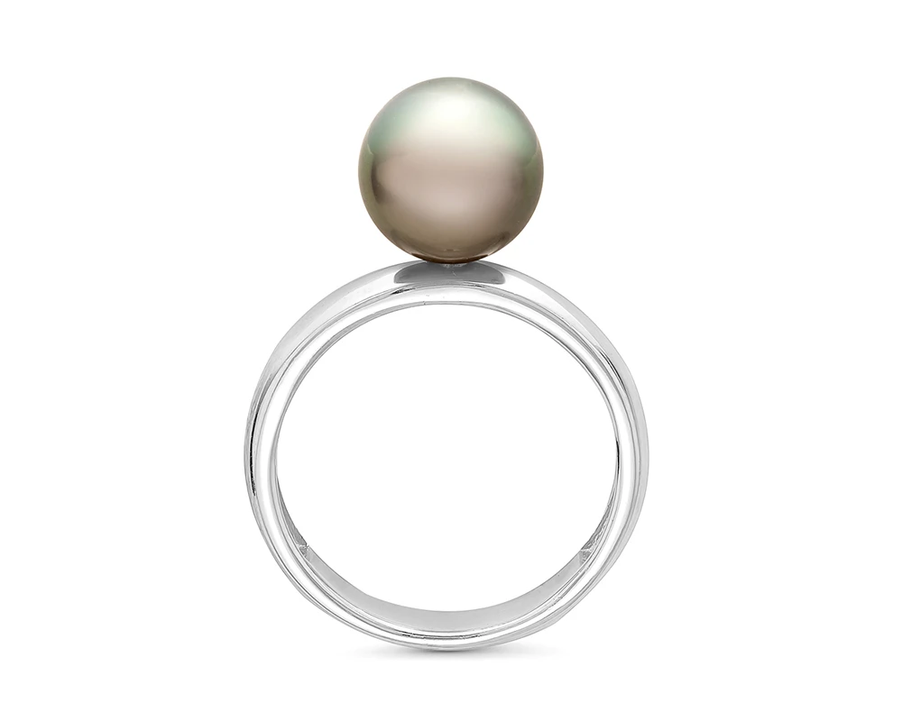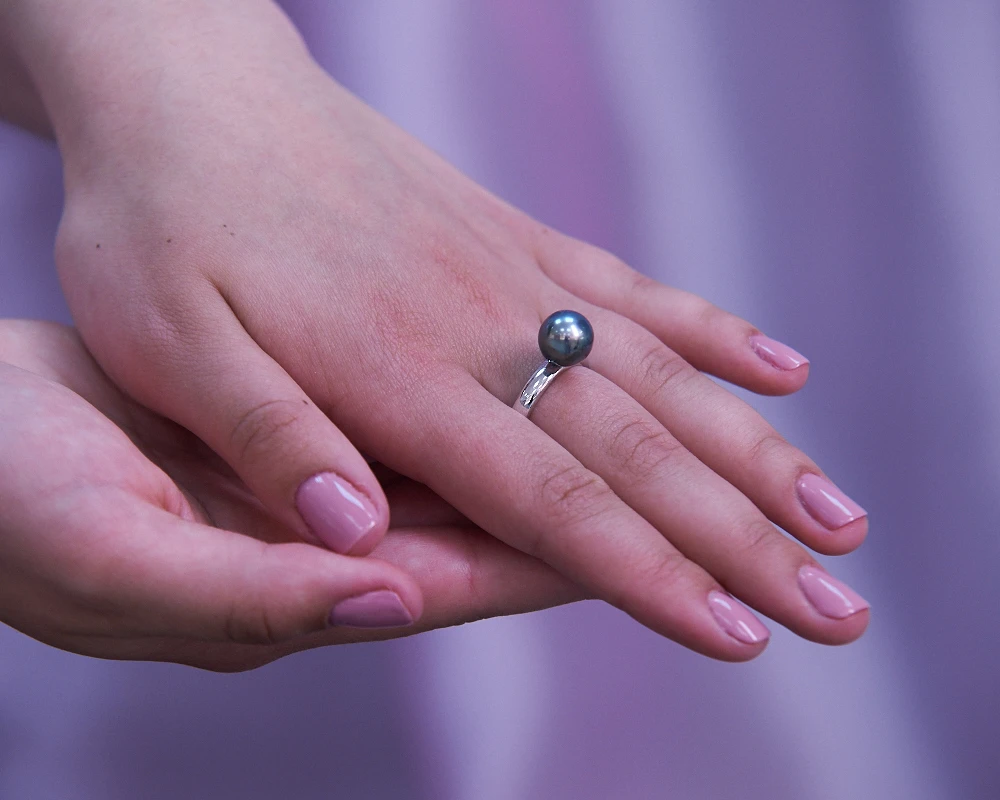 Кольцо из серебра 925 пробы украшено морской Таитянской жемчужиной. Качество жемчужины высокое, яркий перламутровый блеск и идеальная ровная поверхность жемчужины.
