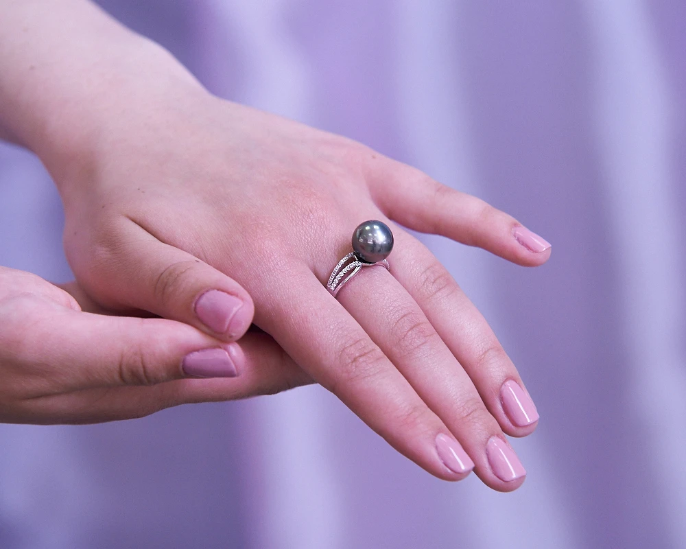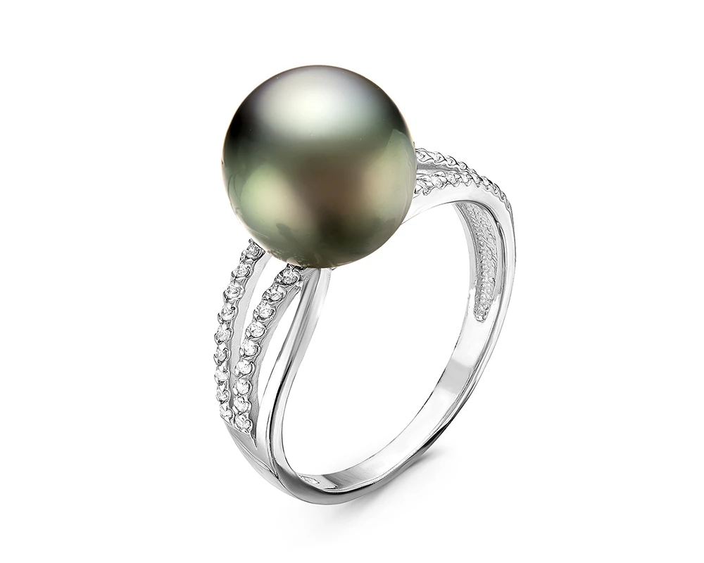 Кольцо из серебра 925 пробы украшено морской Таитянской жемчужиной. Качество жемчужины очень высокое, яркий перламутровый блеск и идеальная ровная поверхность жемчужин.
