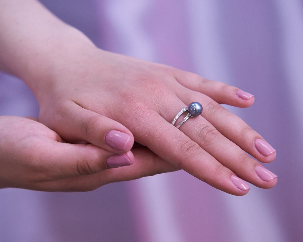 Кольцо из серебра 925 пробы украшено морской Таитянской жемчужиной. Качество жемчужины высокое, яркий перламутровый блеск и идеальная ровная поверхность жемчужин.