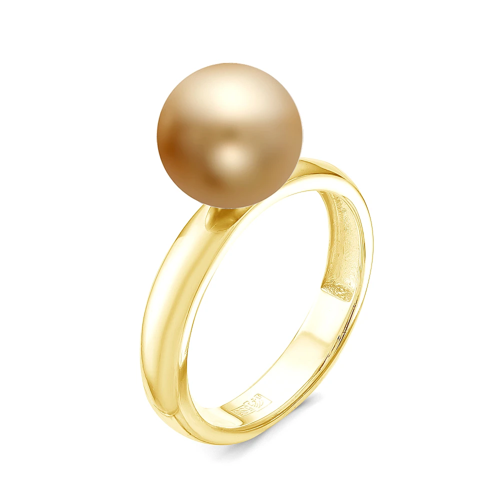 Кольцо выполнено из серебра 925 пробы с желтым золотым покрытием, украшено золотистой морской жемчужиной. Производство — Россия. Государственное пробирное клеймо.