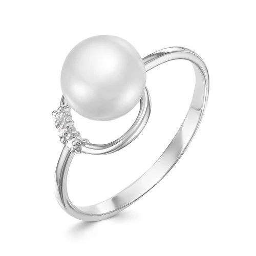 Кольцо из белого золота с белой речной жемчужиной 8,5-9 мм, (7249)