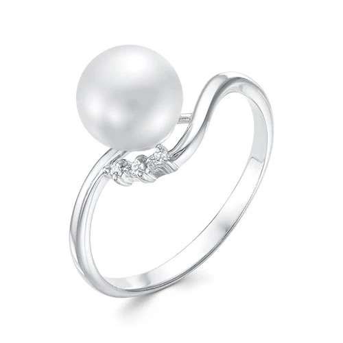 Кольцо из белого золота с белой речной жемчужиной 8-8,5 мм, (7257)