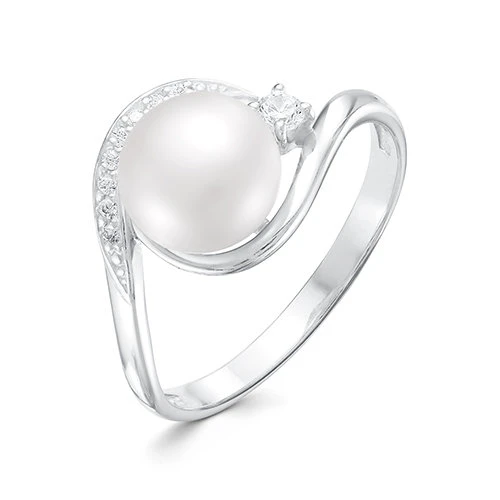 Кольцо из белого золота с белой речной жемчужиной 8,5-9 мм, (7251)
